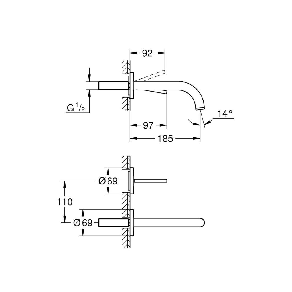 • merkezler arası uzaklık 110 mm